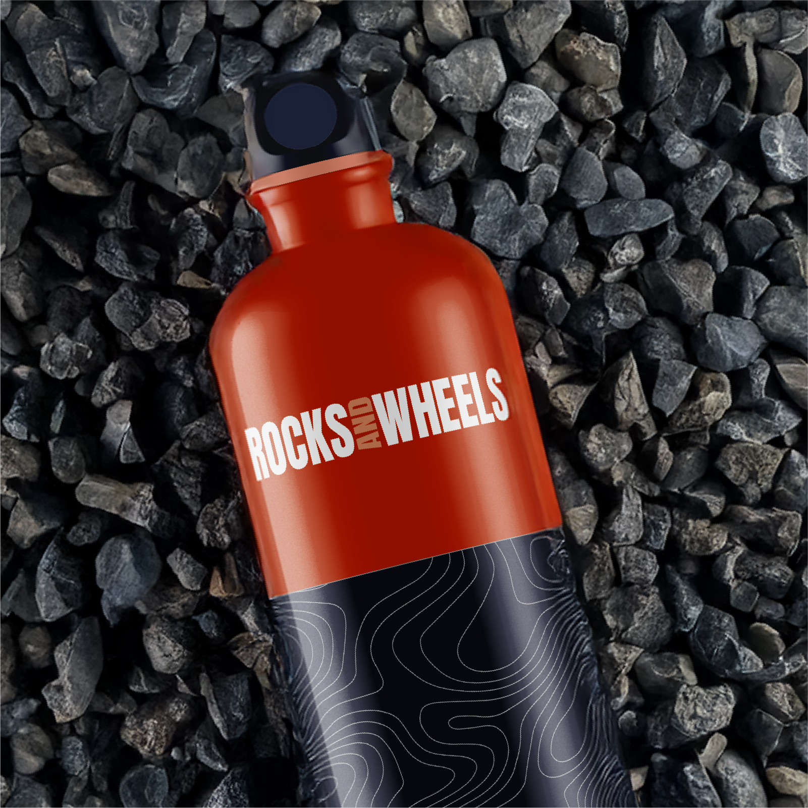 The colour palette reflects the landscape Rocks and Wheels sits within, a rich copper, deep indigo and soft ivory as the primary trio, supported by storm, blush and coal. The contour line backgrounds that run through the brand assets echo the terrain of the surrounding hills and forest, tying the visual identity directly to the place it comes from.